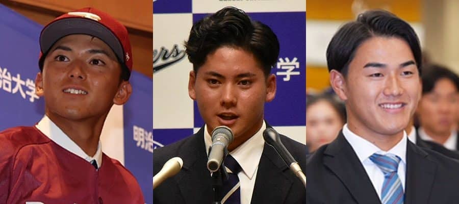 明大・宗山に5球団、関大・金丸に4球団、青学大の西川に2球団が競合 明大・宗山塁内野手が楽天、関大・金丸夢斗投手が中日に…