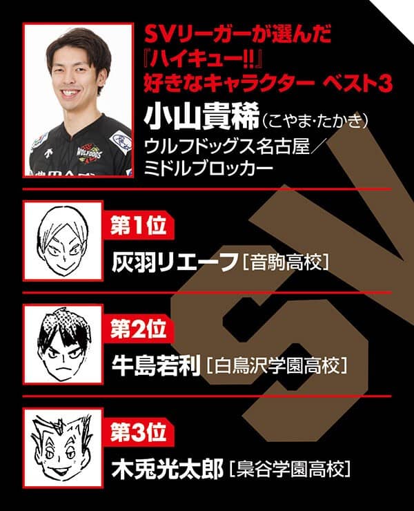 『ハイキュー‼』×SVリーグ コラボ連載(9)ウルフドッグス名古屋 小山貴稀(連載8:ウルフドッグス山崎彰都は月島蛍に共…