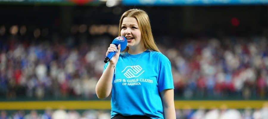 19歳のでブロンドヘアが美しいピーターソンさんは、ワールドシリーズで2年連続の大役。しっとりと、かつ堂々と国歌を歌いあげる姿に球場中が聞き入り、先発する山本由伸投手も真剣なまなざしで帽子を胸元に当てていた。