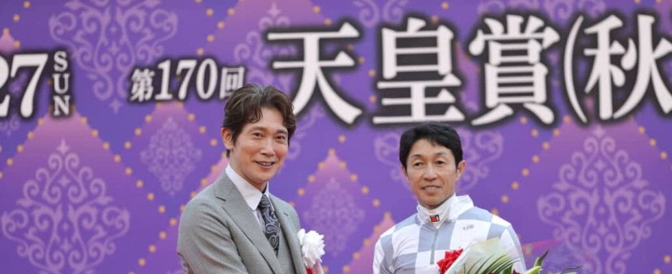 JRA年間プロモーションキャラクターを務める佐々木蔵之介、ドウデュースに騎乗した武豊騎手