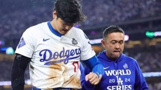 トレーナーに支えられ、ベンチ裏へと下がっていった大谷。(C)Getty Images 苦悶する大谷翔平に対するファンの“…
