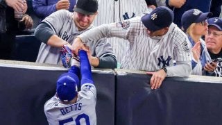 ヤンキースファンがベッツからボールを奪い取ろうとした(C)Getty Images ワールドシリーズ3連敗のヤンキースは…