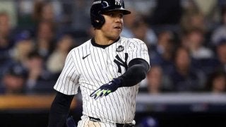 ポストシーズンも打ちまくったソト。ヤンキースを牽引した彼の存在は大きな注目を集めている。(C)Getty Images …