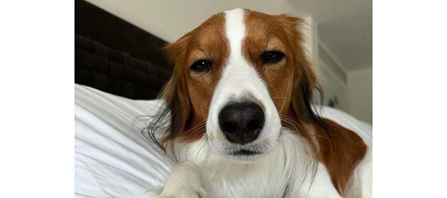 インスタグラムで公開されたベッドで眠そうな様子のデコピン(写真はスクリーンショット)