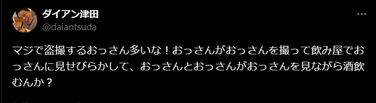 ダイアン津田の鋭いツッコミ!「おっさん同士の盗撮問題」に思わず笑いが広がる | 話題の投稿