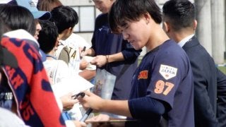 プレミア12初戦の先発を任せられる井上温大。ファンのサインの求めにも気さくに応じていた(C)TsutomuBEPPU/C…