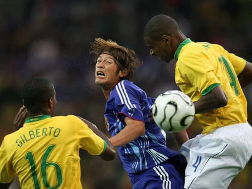 ブラジルの怒涛の攻撃に対して、日本の守備陣はギリギリのところで踏ん張って、奪ったボールをクリアするのが精いっぱいだった。そのため、クリアしてもすぐに回収されて、攻撃を食らう。その繰り返しで、たまに前線にボールが入っても、巻や玉田はすぐに2、3人の敵に囲まれてボールを奪われた。