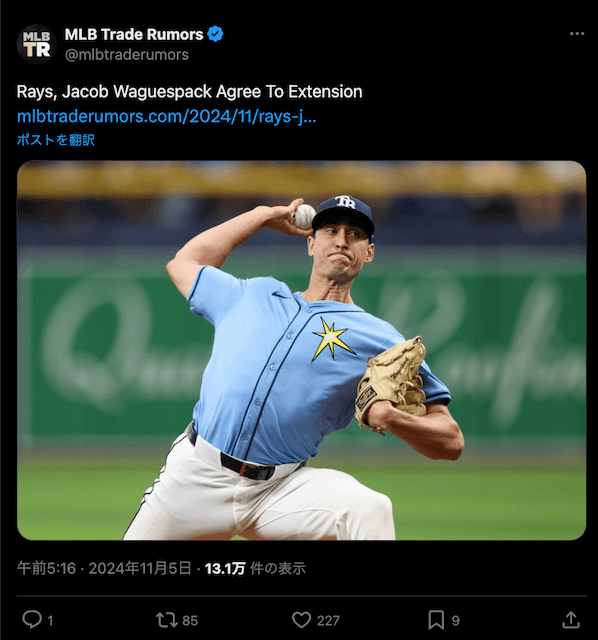 「オリックス日本一の立役者」現レイズのワゲスパックが契約延長! | 話題の投稿