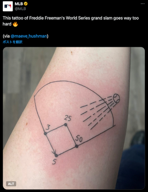 MLB公式Xがとあるファンのタトゥーの写真を公開した。【画像】ネットがっかり⁉️「真美子さんどこですか❓😢」大谷翔平の妻…