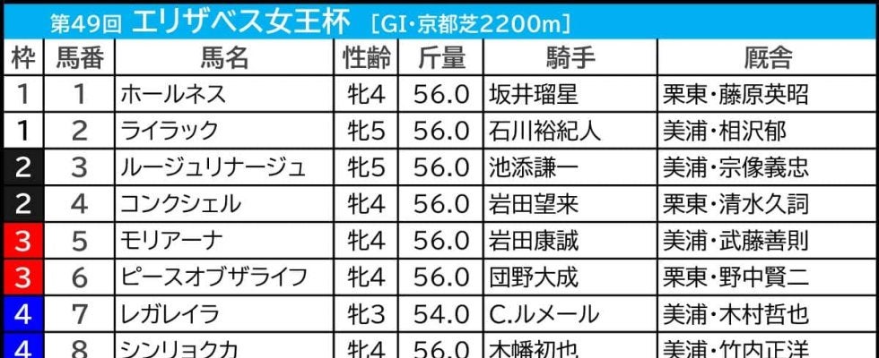 ◆【エリザベス女王杯2024/穴馬アナライズvol.1】前日“10人気”前後に警戒 「展開利」の恩恵あるメンバー構成に感じる激走の可能性