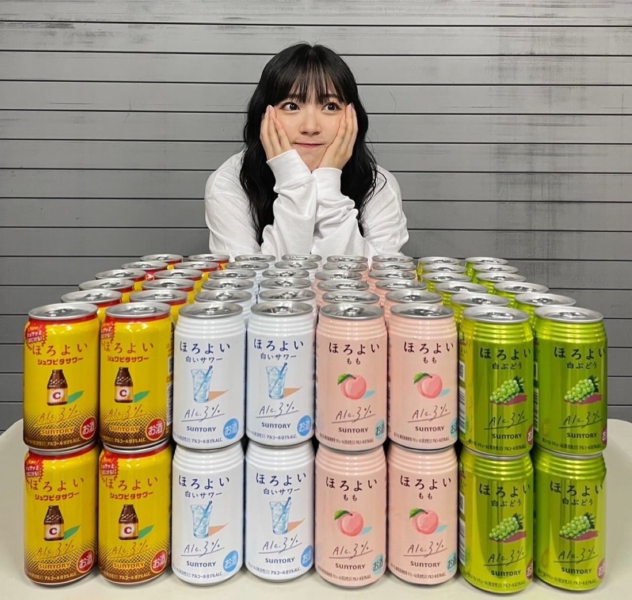 「東京公演の際に、サントリーさんからほろよいの差し入れをいただきました☺️♡」と綴り、3枚の写真をアップ。