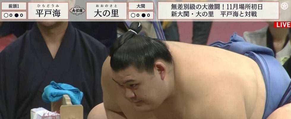 一方、大の里の取組を見て実況の舩山陽司アナウンサーが「大の里立ち合い良くありませんでした」「ホッとした表情です」と指摘すると、解説の元横綱・若乃花の花田虎上氏は「平戸海は立ち合い良かったですね。あまりにも良かったから勢いが止まっちゃったんですよ」と話しつつ、「ほら、首振ってるでしょう。これは良くないなと思っている。でも大関で初日勝って良かったという自分の中でのせめぎ合い」と大の里の微妙な表情変化を受けての心情を推察していた。