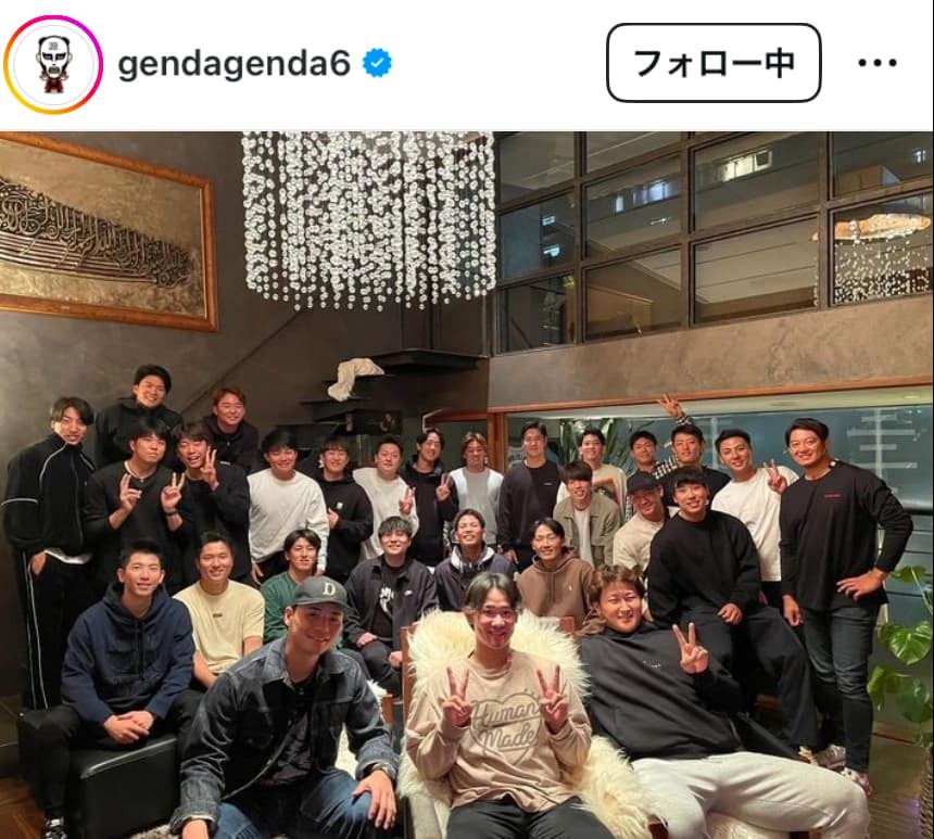 野球日本代表に選ばれている西武の源田壮亮が11日、自身のインスタグラムを更新した。【画像】侍ジャパンの「同級生会」に豪華…