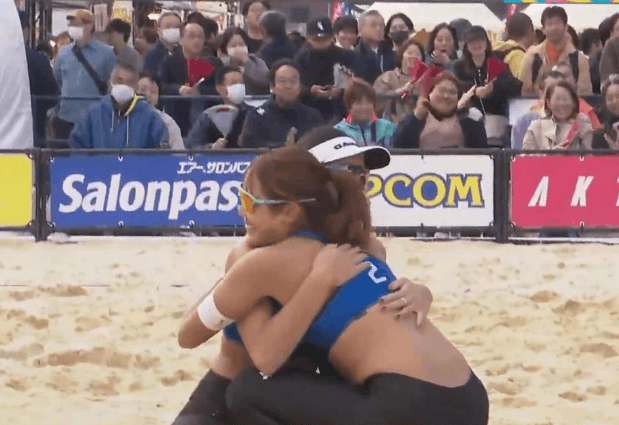 美女ビーチバレー選手・菊地真結「横浜赤レンガ倉庫大会3位!」熱い抱擁シーンにファン”もらい泣き” | 話題の投稿