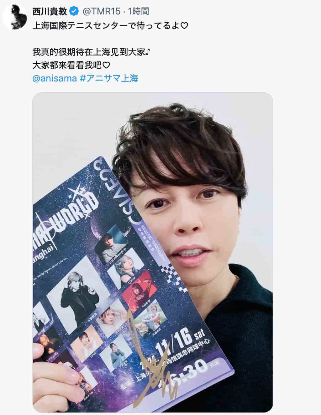 西川貴教、アニサマ上海公演出演を告知 「上海国際テニスセンターで待ってるよ♡」 | 話題の投稿