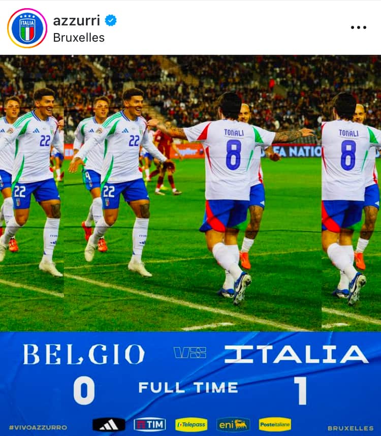 イタリア代表がUEFAネーションズリーグでベルギー代表に1-0で勝利したことを公式Instagramで発表。決勝ゴールを…