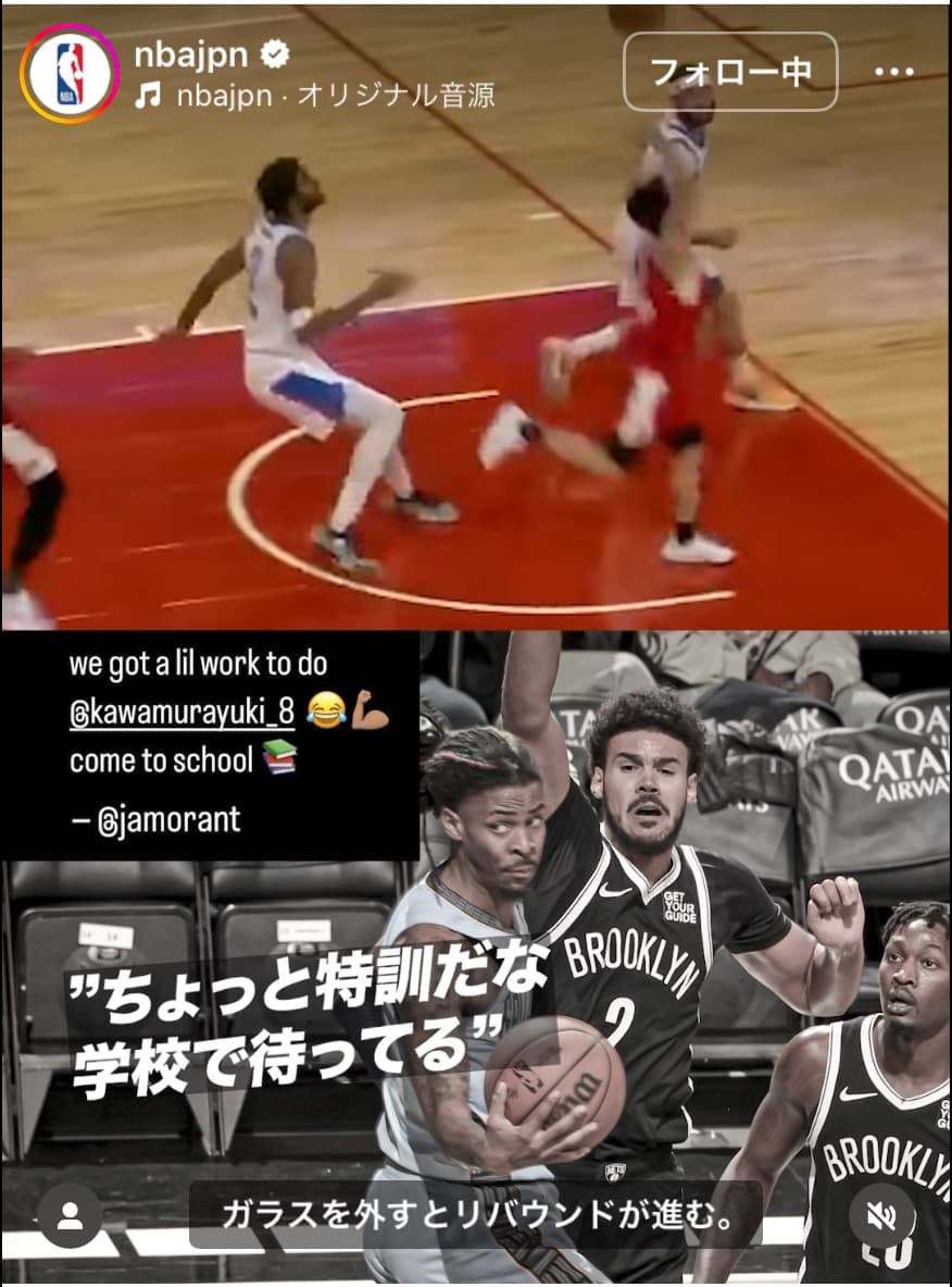 NBA Japanが17日、公式インスタグラムを更新した。【画像】河村勇輝 Gリーグデビュー!7得点、10アシストの活躍…