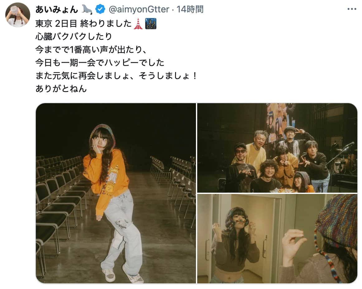 あいみょん、東京公演2日目が感動のフィナーレ!公式Xで感謝と笑顔を共有