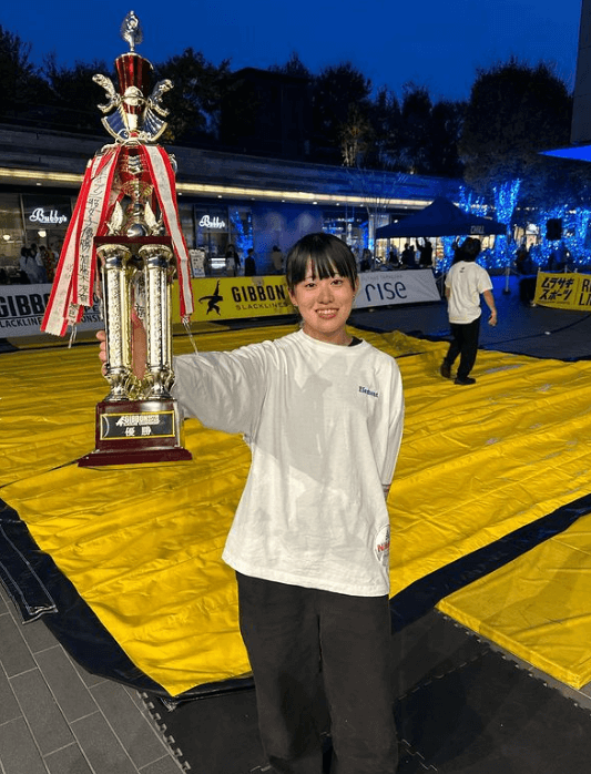 美女スラックライダー・竹部茉桜、絶技を決め「日本オープンスラックライン選手権・優勝!」