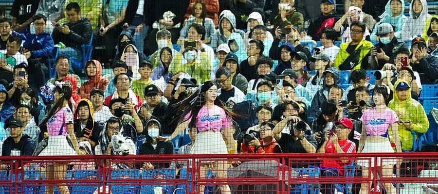 台湾・天母野球場で18日に行われた「ラグザス presents 第3回 WBSC プレミア12」グループB、野球日本代表「侍ジャパン」対ドミニカ共和国で、台湾のチアガールが球場を盛り上げた。YOASOBIの人気曲「アイドル」に合わせてパフォーマンス。球場を盛り上げた。