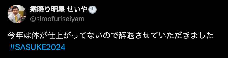 霜降りせいや、SASUKE辞退の理由語る | 話題の投稿