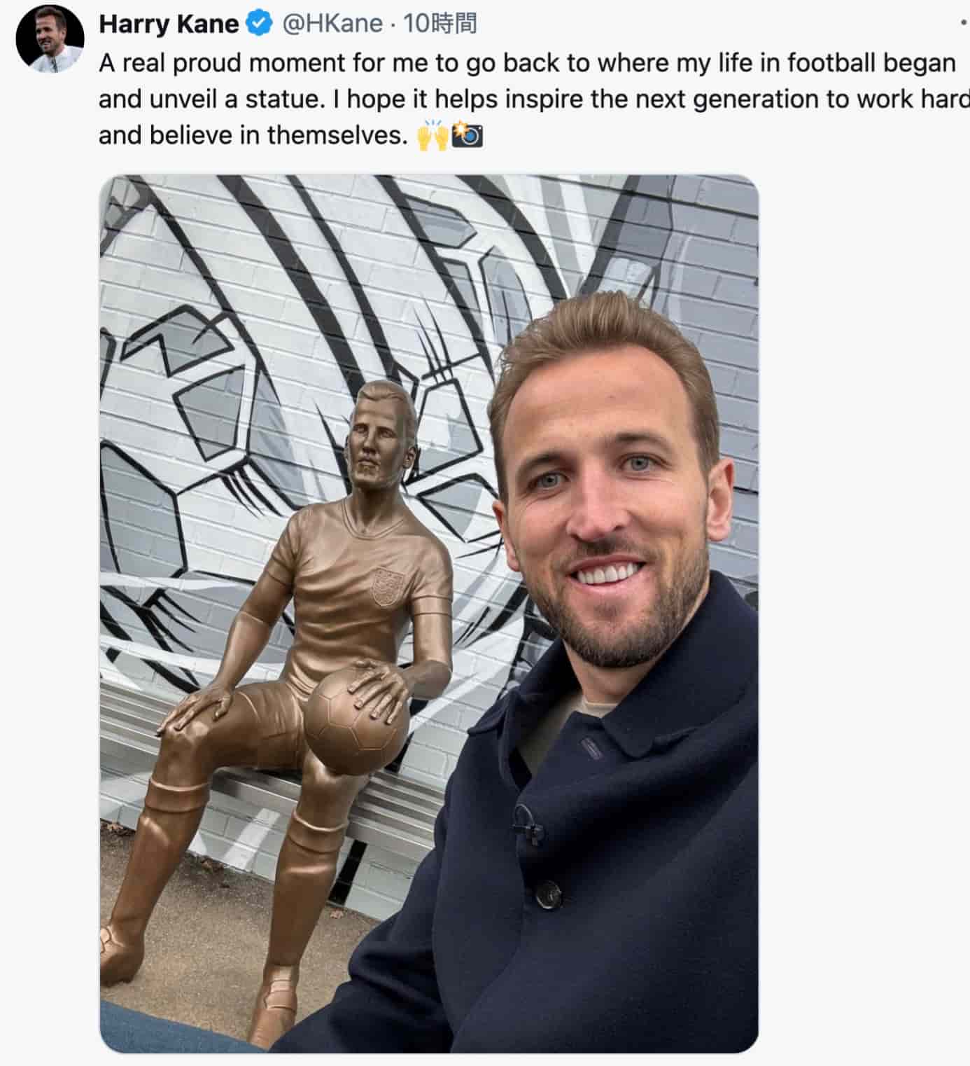 イングランド代表のハリー・ケインが、自身のサッカー人生の原点に戻り、銅像の除幕式に参加。公式Xにその喜びを投稿し、感動を…
