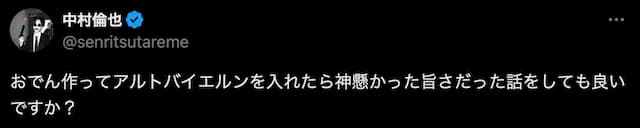 俳優の中村倫也が18日、自身のXを更新した。【画像】「お疲れ〇〇〇」 松山ケンイチ、自身の役名にかけた投稿「おでん作って…