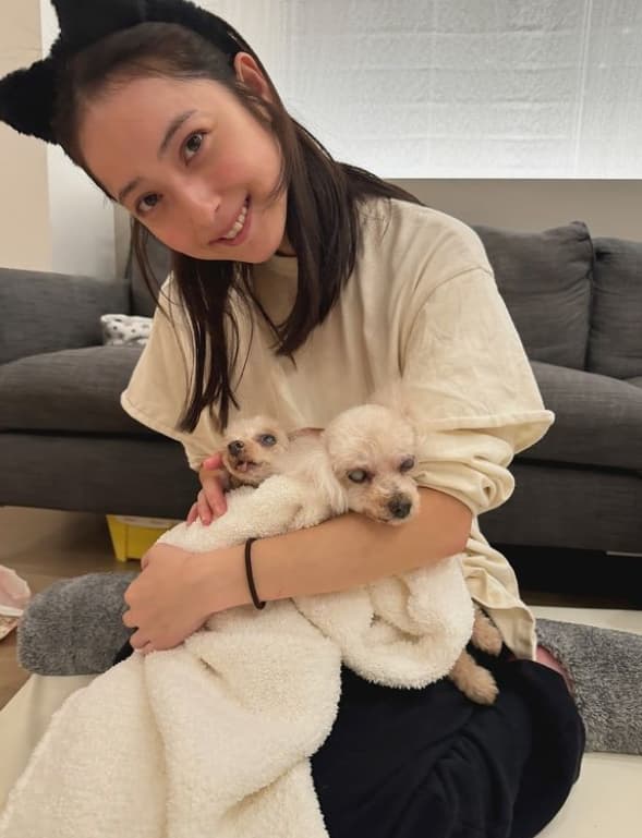 佐々木希が飼い犬の可愛い姿を公開!寒さに負けないお婆ちゃんワンコ!