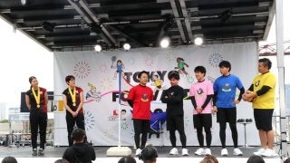 ステージ上、左から長谷山選手、中田選手、フィッシャーズの皆さん(adsbygoogle=window.adsbygoog…