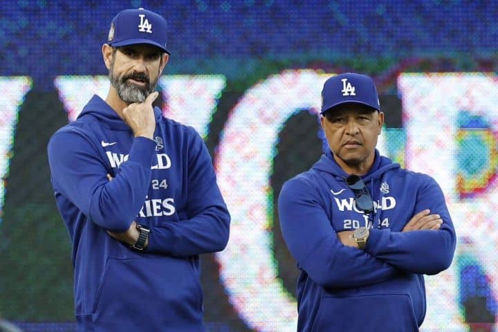 プライアー投手コーチ(左)が、来季の投手構想を明かした。(C)Getty Images 連覇が懸かる来季に向け、スター軍…