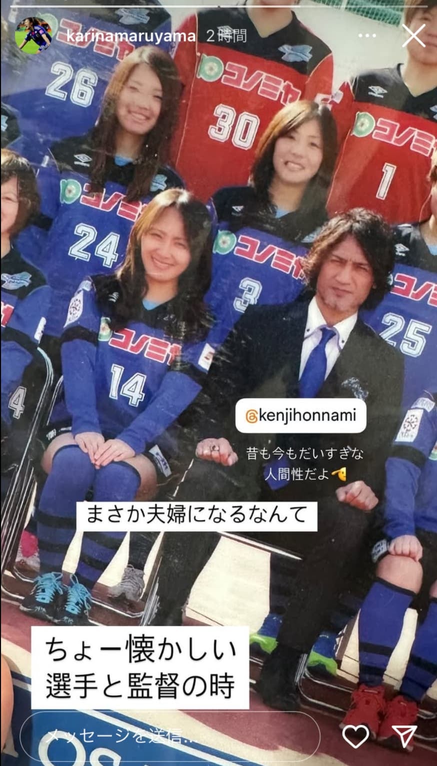 「ちょー懐かしい 選手と監督の時」と綴り、写真を投稿。写真には選手と監督として写る、丸山と夫・本並の姿があった。