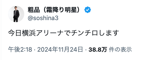 霜降り明星・粗品 横浜アリーナでチンチロを開催‼︎ | 話題の投稿