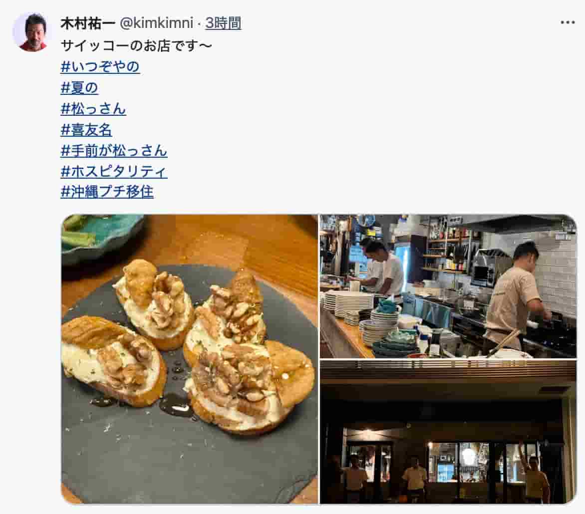木村祐一が公式Xで24日、沖縄プチ移住中に訪れた名店「松っさん」を紹介。店内や料理の写真を投稿し、ホスピタリティあふれる…