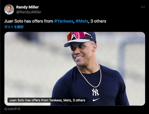ソトにヤンキースなど5球団がオファー MLB有力記者が報じる | 話題の投稿