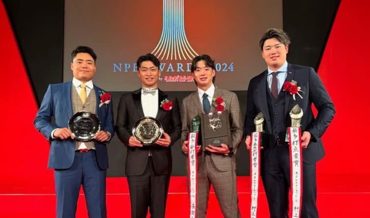 ヤクルト・村上宗隆、タイトル授賞式の写真を公開!「#ひでき緑のネクタイ似合ってるよ」