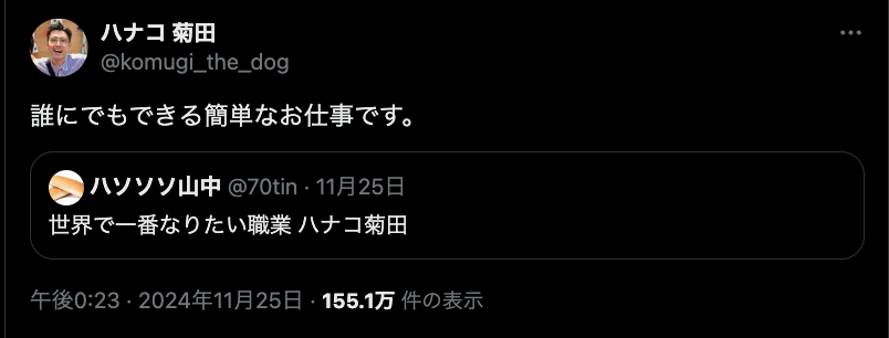 ハナコ菊田、職業で煽られるもリプライで万バズ 「さすが芸人」の声 | 話題の投稿