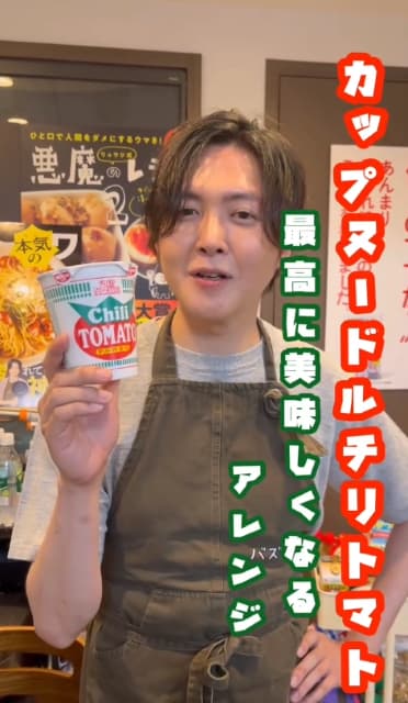 美味しさ倍増!?料理研究家 リュウジの最強アレンジ 「カップヌードルチリトマト」編! | 話題の投稿
