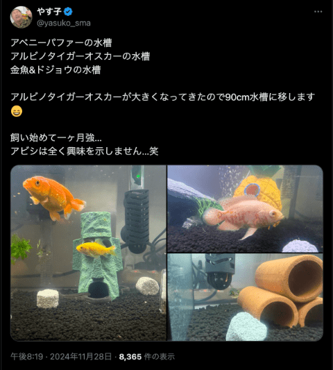 お笑い芸人のやす子が28日、自身のXを更新した。【画像】やす子 なぜか大きなゲージDIY「アベニーパファーの水槽 アルビ…