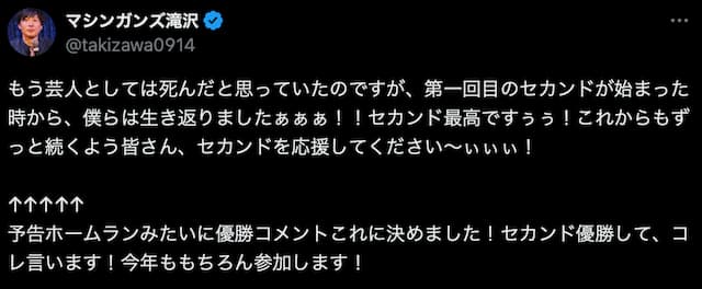 マシンガンズ滝沢が「THE SECOND 2025」の優勝報告!? | 話題の投稿