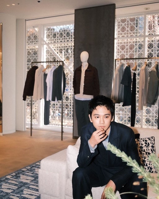 DIORの店内と思われる場所で、顎に手を置いてどこかを見つめる写真を投稿した。服装はスーツでバチっと決まっており、整った顔立ちなのがよくわかる。