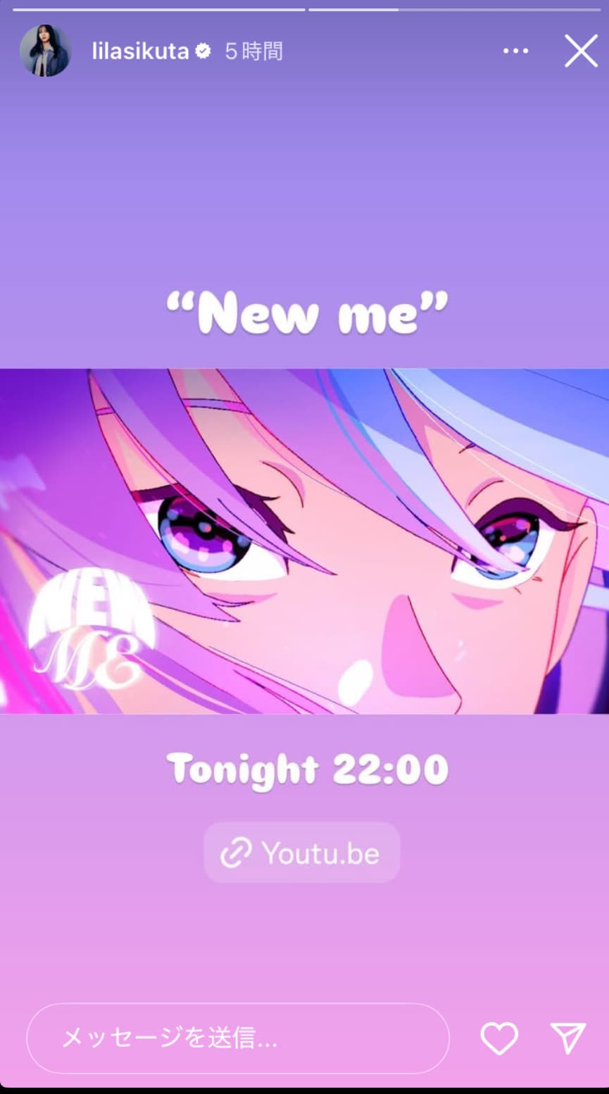 新曲MVのYouTubeリンクと共に画像を投稿。『New me』のMV公開を伝えた。