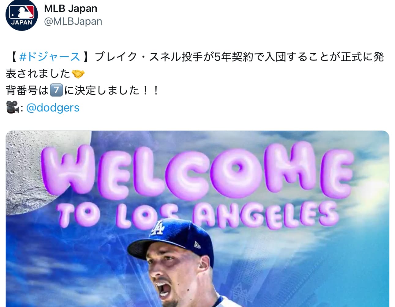 ドジャースがサイ・ヤング賞左腕と5年282億円で契約!!MLB Japan | 話題の投稿