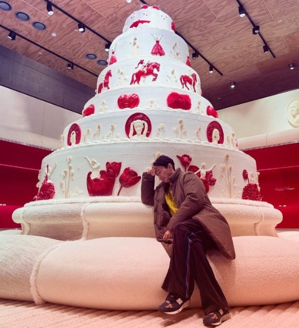 有吉弘行、ジェニーとNUDAKEの超大型ケーキに座るポーズがかっこいいと話題に! | 話題の投稿