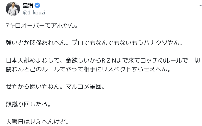 皇治がメイウェザー秘蔵っ子に「アホやん」「頭蹴り回したろ」大晦日の対戦は...? | 話題の投稿