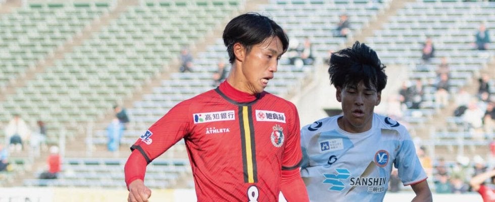 J3リーグ参入を目指すJFL高知は1日、入替戦第1戦でYS横浜と1-1ドロー。開始5分の失点でいきなり出鼻をくじかれるも、吹っ切れたかのごとく陣地を押し上げ、前半のうちにDF上月翔聖が果敢な仕掛けから同点弾をねじ込んだ。