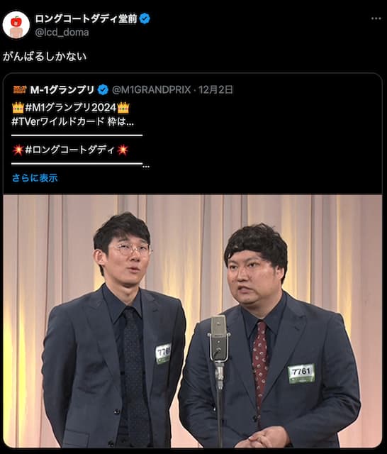 ロンゴコートダディがワイルドカードでM-1準決勝進出!堂前の反応は…? | 話題の投稿