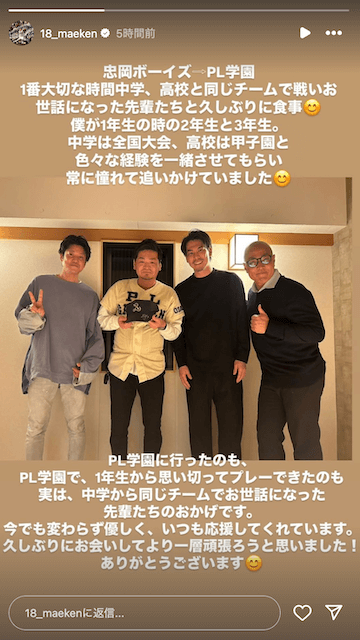 前田健太がPL学園でお世話になった先輩たちと食事会! | 話題の投稿