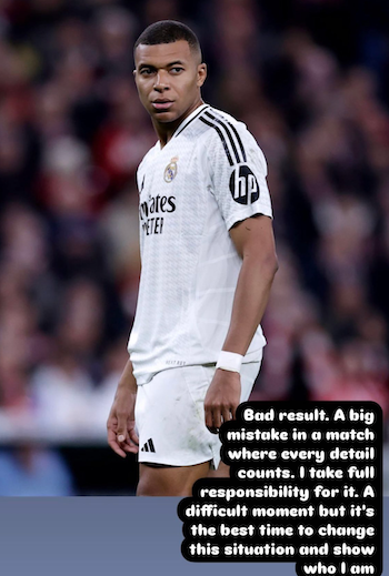 レアル・マドリード所属のキリアン・エンバペが5日、自身のインスタグラムストーリーを更新した。