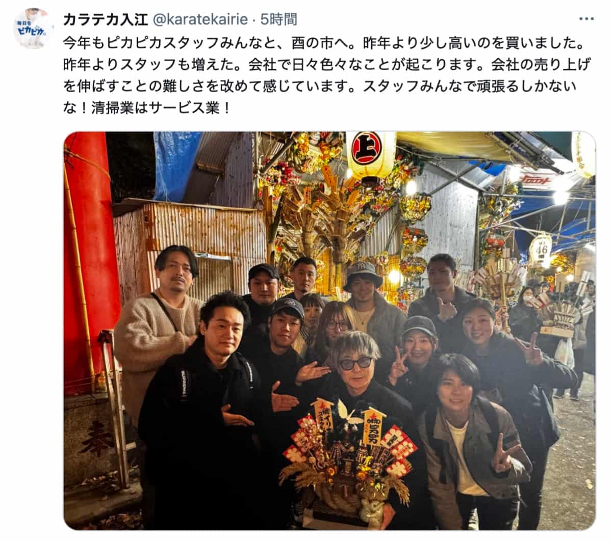 カラテカ入江、スタッフと酉の市へ!「清掃業はサービス業」成長を誓う | 話題の投稿