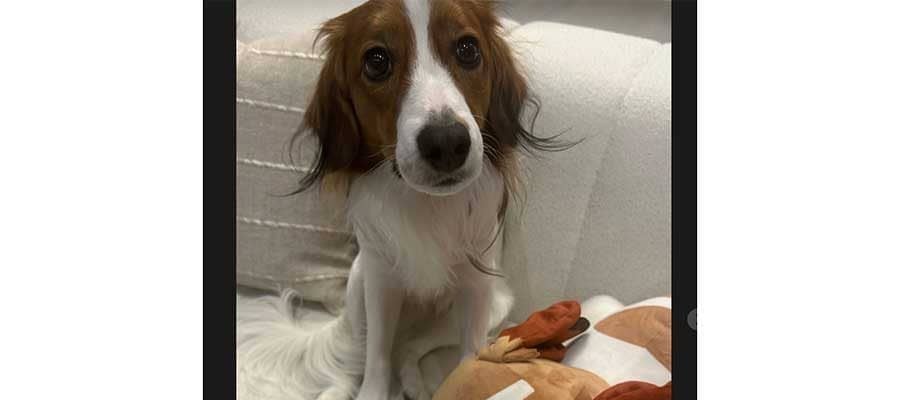 大谷は続けて、デコピンがぬいぐるみに寄り添って眠る様子や、かぶりつく写真もアップした。ぬいぐるみはデコピンにあわせたカラーとなっており、そばには“大谷一家”とみられる絵がデザインされたお皿も添えられている。